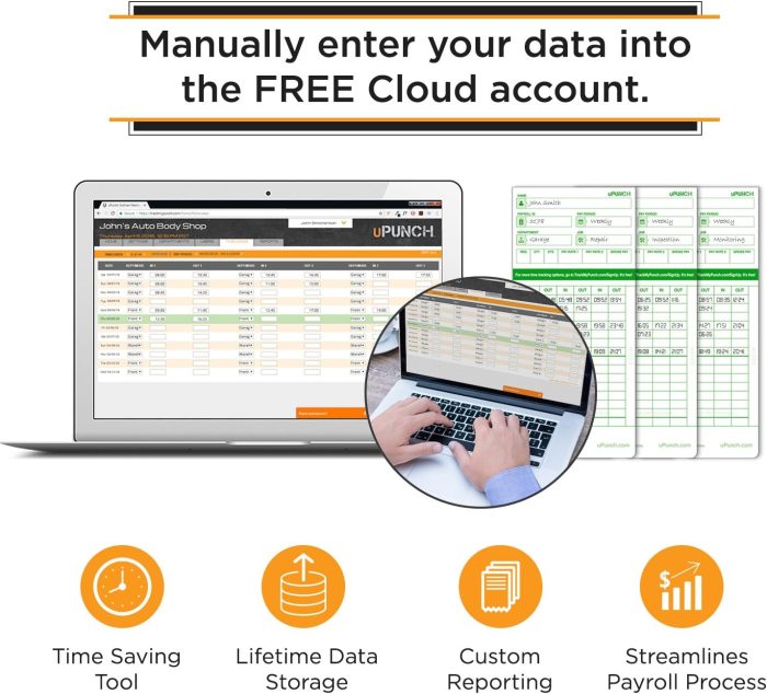 - Easily track your employees’ start times, break times, lunch times, and finish times with the uPunch Auto Align Time Clock.